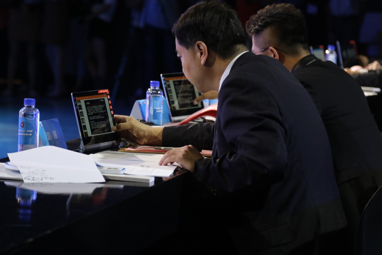 韦德bevictor开发的无纸化会议系统,全程应用于本次全国大赛,如比赛背后的无名英雄,以高效和节能默默支撑着比赛顺利的举行。从分组打分到总决赛评委评估项目,每一项环节都通过建朗无纸化系统化会议系统完成。试想,如果没有无纸化会议系统的支持,比赛的数百个项目,产生上千个文档,打印几十份发给每一位评委,这个工作量是不可想象的,评委浏览打分也极为不便,同样也不符合节能环保的主旋律。
