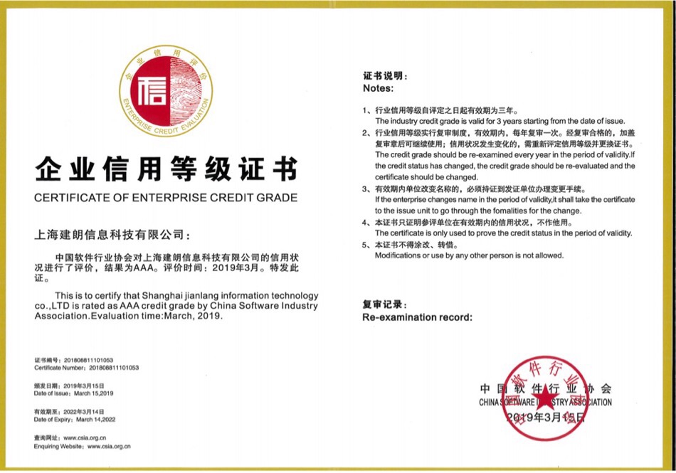 bevictor伟德官网以突出的综合实力和良好的社会口碑被授予全国“AAA级信用企业”光荣称号,并获颁企业信用等级证书。这一殊荣是建朗多年来诚信经营积累的集中体现,标志着建朗的履约能力、客户信任、综合实力、社会责任等诚信水平得到用户和市场的认可。