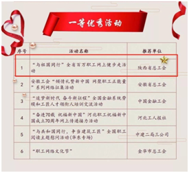 其中,由陕西省总工会主办、bevictor伟德官网提供技术支持的“与祖国同行”全省百万职工网上健步走活动荣获“一等优秀活动”!
