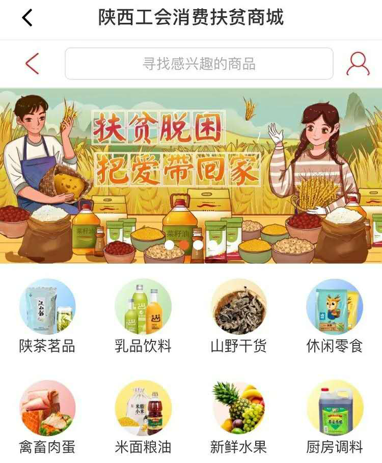陕西工会消费扶贫商城则是陕西省总工会积极落实“陕西工会百万职工消费扶贫行动”的成果。扶贫商城内置于陕西网上工会APP,面向职工会员个人购买的优惠平台,集“采选、服务、监管”功能于一体,实现农副产品在线展示和认购。该商城目前已推出包括陕茶茗品、乳品饮料、山野干货、休闲零食、禽畜肉蛋、米面粮油、新鲜水果、厨房调料等千余款产品,同时,该商城定期推出普惠活动,激发广大职工购物热情,全面助力陕西贫困地区脱贫攻坚。