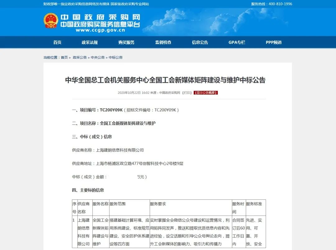 10月22日,韦德bevictor中标中华全国总工会《全国工会新媒体矩阵建设与维护》项目,此次中标是继2018年服务全总中国工会第十七次全国代表大会项目后,开启的新一轮合作。