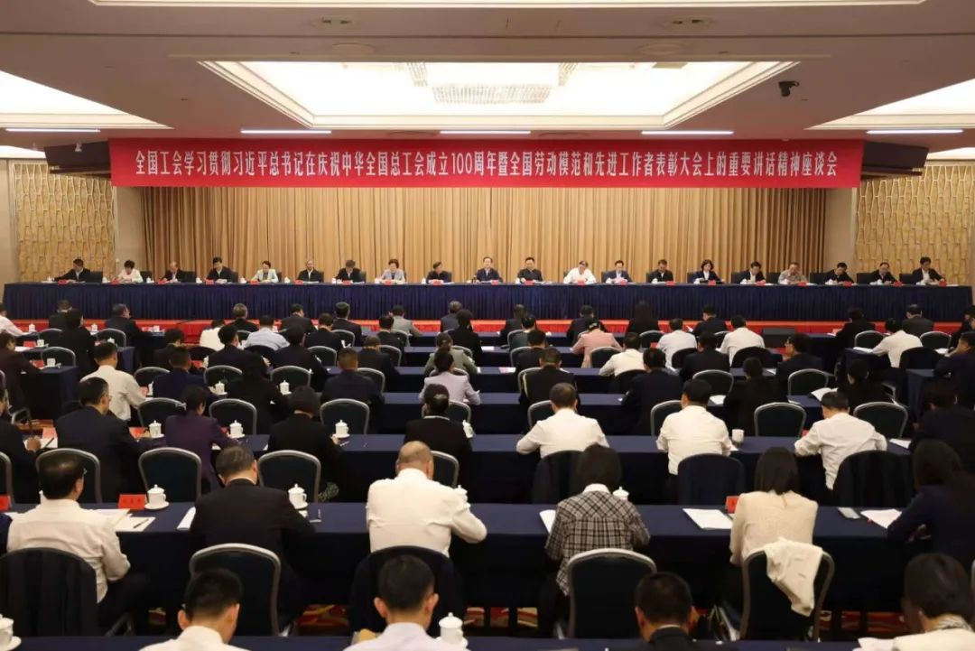 王东明在全国工会学习贯彻习近平总书记在庆祝中华全国总工会成立100周年暨全国劳动模范和先进工作者表彰大会上的重要讲话精神座谈会上指出